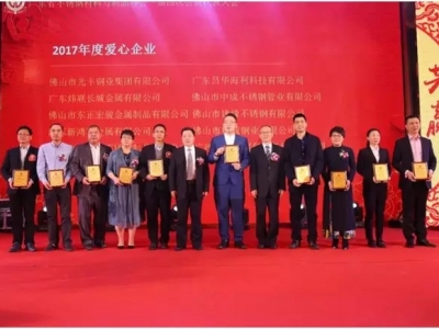 2017年12月23日,由中国特钢企业协会不锈钢分会、佛山市商务局、佛山市禅城区人民政府指导、澜石不锈钢协会主办、信用行科技股份有限公司承办的“2017年中国不锈钢高端峰会”在佛山希尔顿酒店三楼隆重举行。佛山市东正宏骏金属制品有限公司董事长谭永炼先生出席了本次活动,并获2项殊荣。